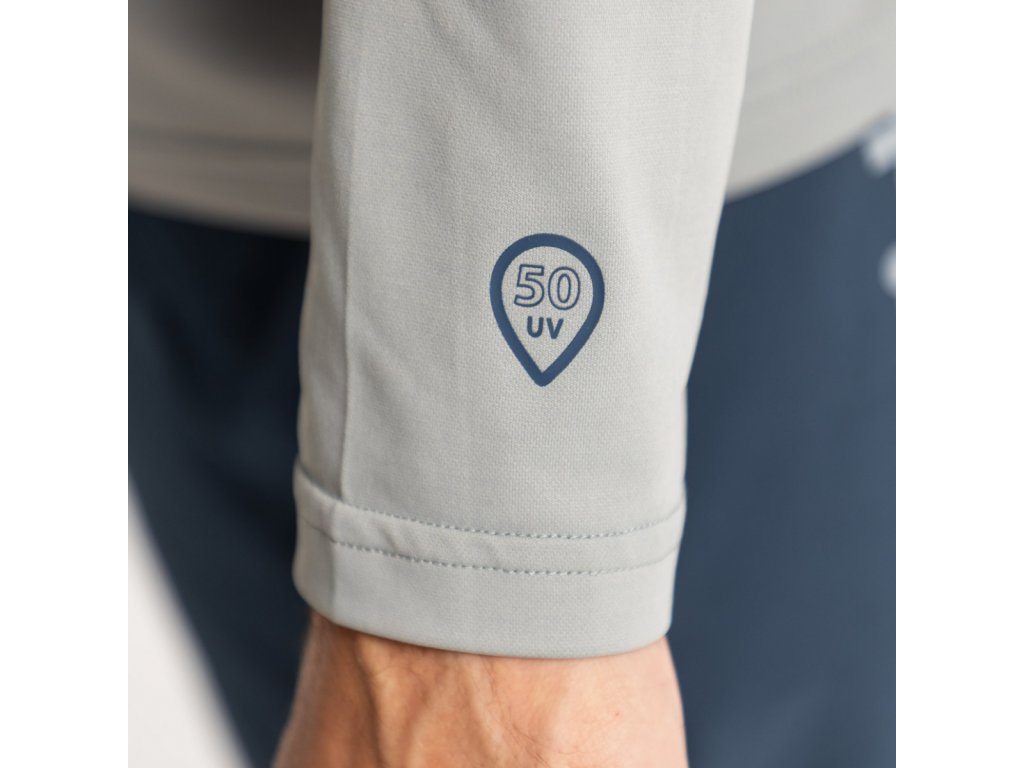 UV tričko s dlouhým rukávem a kapucí, ve vápencově šedé barvě Limestone. Hoodie tričko je vyrobené z nejjemnějšího nylonu, jaký je na trhu k dostání. Chladivý materiál s UV filtrem UPF50+ je příjemný na těle a odvádí vlhkost. V místě podpaží je látka obohacená o ventilaci. Tričko představuje nejlepší ochranu proti slunečním paprskům, zejména během chytání na moři.