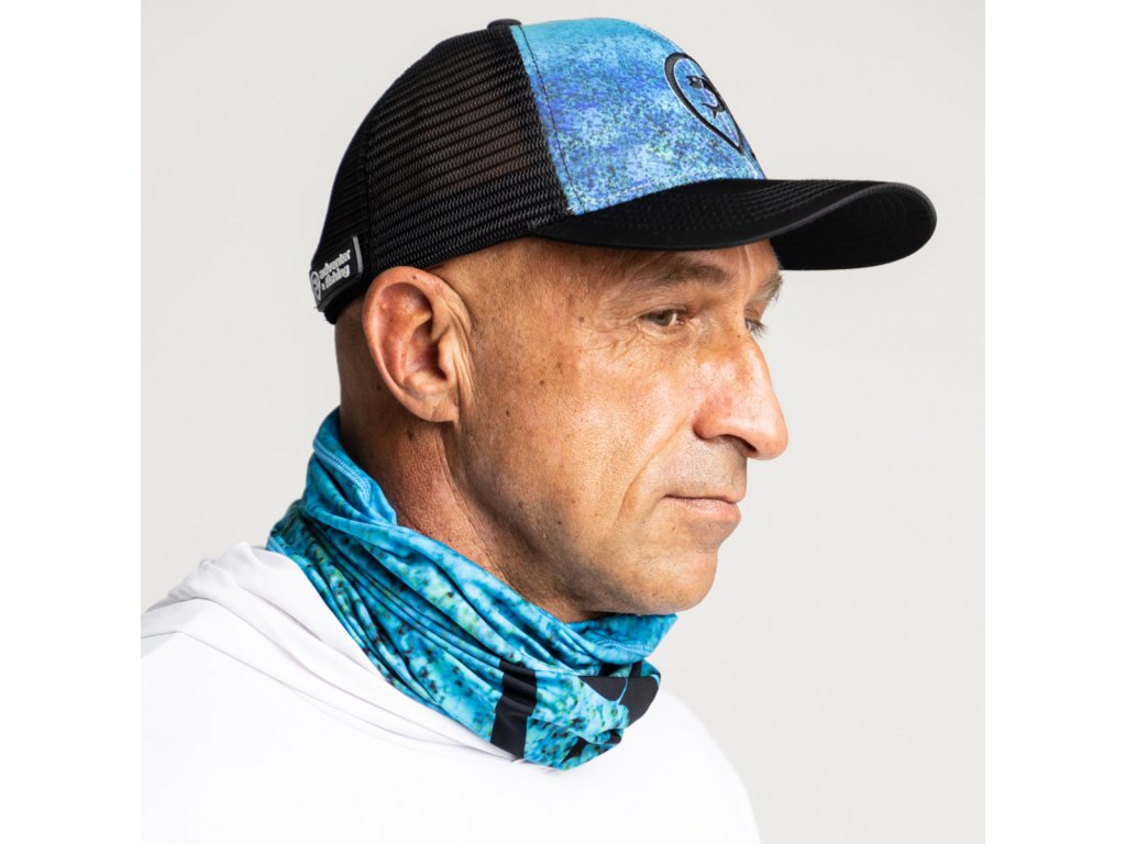 Sportovní unisex nákrčník s funkční UV ochranou UPF50+ a motivem Bluefin Trevally (Kranas modroploutvý) je univerzálním doplňkem každého rybáře. Nosit jej můžete na krku, na hlavě, jako čepici nebo kuklu, nebo jej uvázat na zápěstí. Výhodou je, že materál je příjemný i pro muže s vousy a nežmolkuje se. Materiál je rychleschnoucí, chladivý a pružný. Skvěle se v ochraně před přímým slunečním zářením doplňuje s našimi UV tričky.