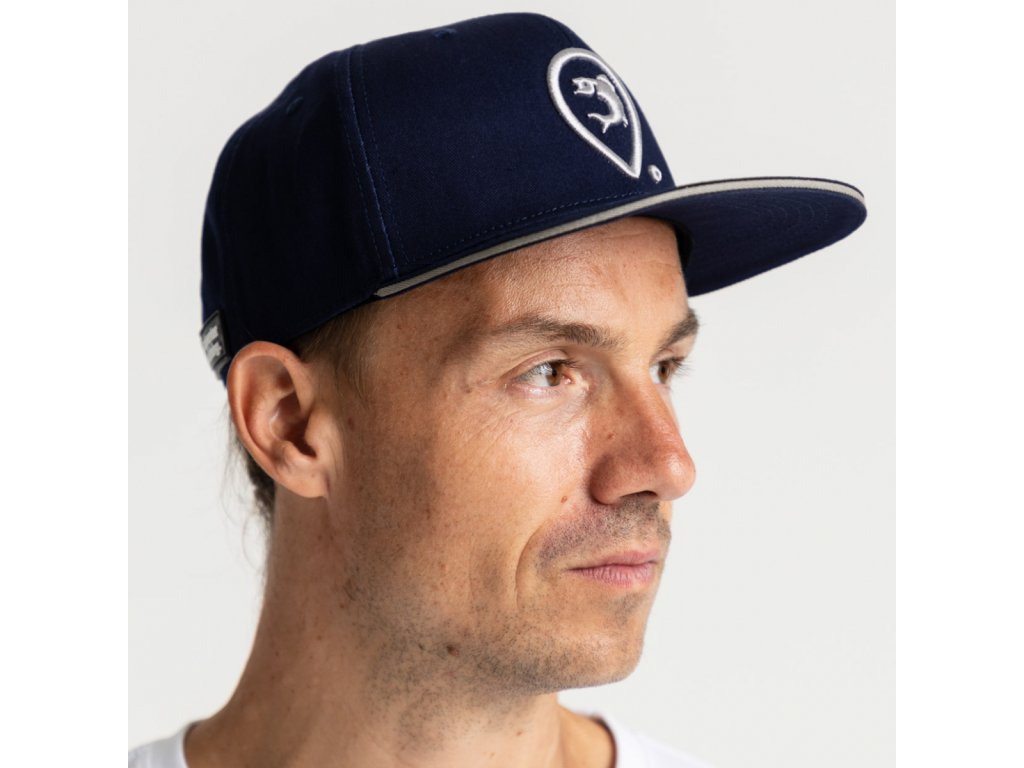 Bavlněná unisex kšiltovka typu snapback s rovným kšiltem v tmavomodré barvě Original Adventer a vyšitým logem Adventer & fishing. Díky anatomickému tvaru a stahování v zadní části dobře sedí na hlavě. Kšiltovka má univerzální velikost.