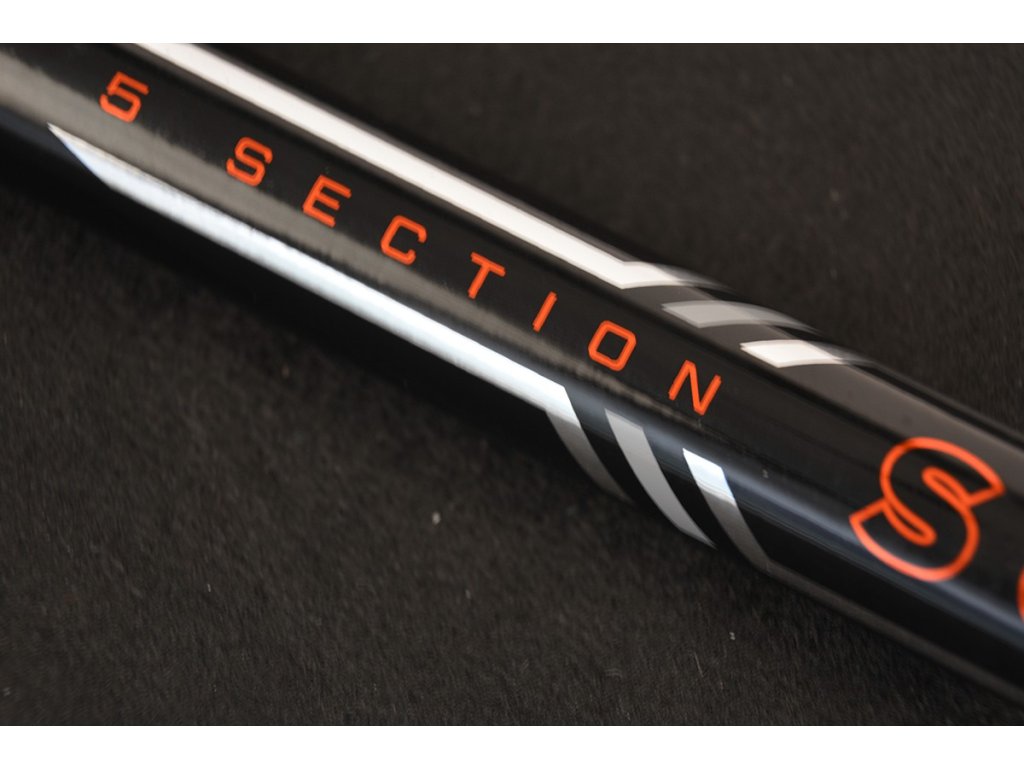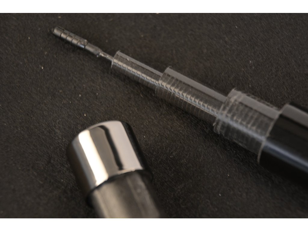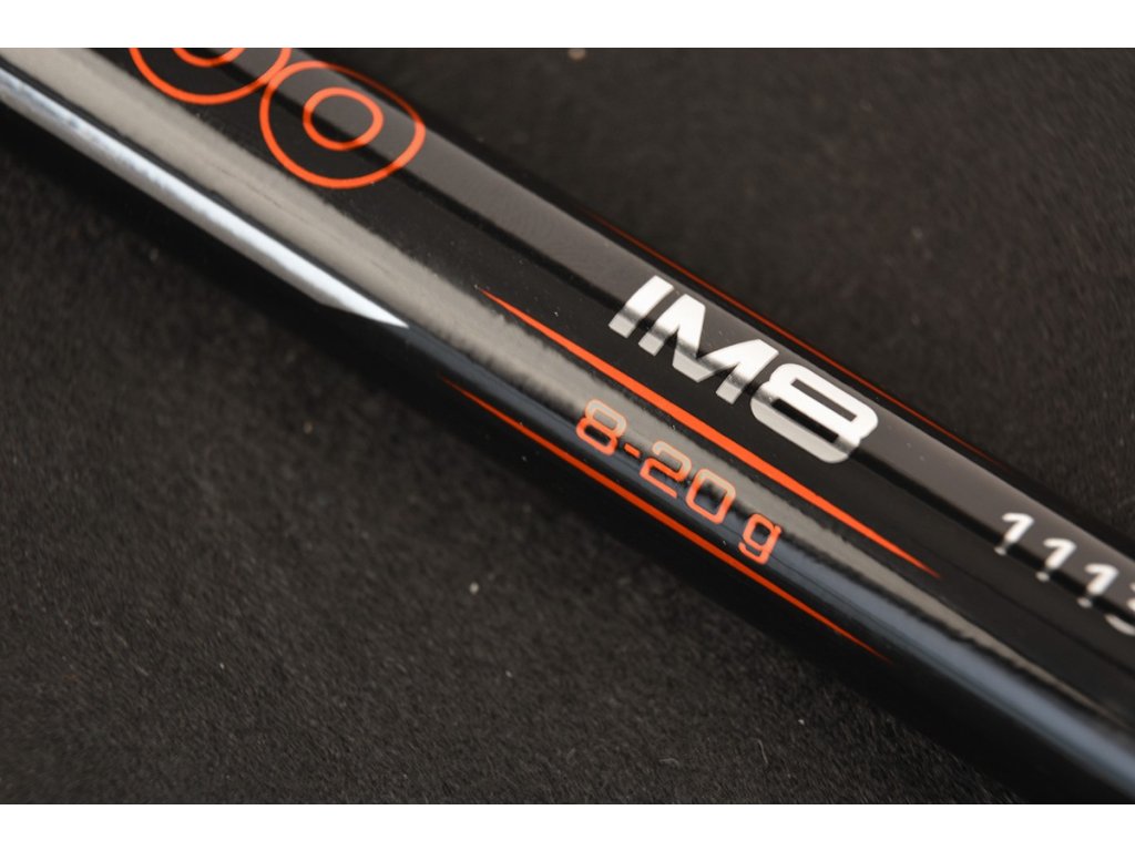 Po vytažení je materiál klasický IM8 karbon, který je vyztužený i na spojích, aby se minimalizovala šance poškození. Je lehký, rychle reaguje na záběr a umíme s ním přesně nastavit vlasec i plovák. Ve spodní části uzavírá tělo prutu estetický šroubovací uzávěr.