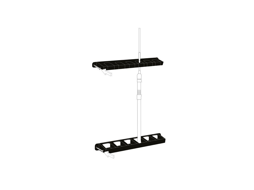 Praktický držák prutů, který je pomocí šroubů možné upevnit na stěnu. Skládá se ze dvou samostatných částí, přičemž každá z nich je vyrobena z velmi pevného a odolného plastu. Vrchní část je navíc opatřena měkkou pěnovou výztuží, díky čemuž bude blank každého prutu v tomto držáku chráněn.