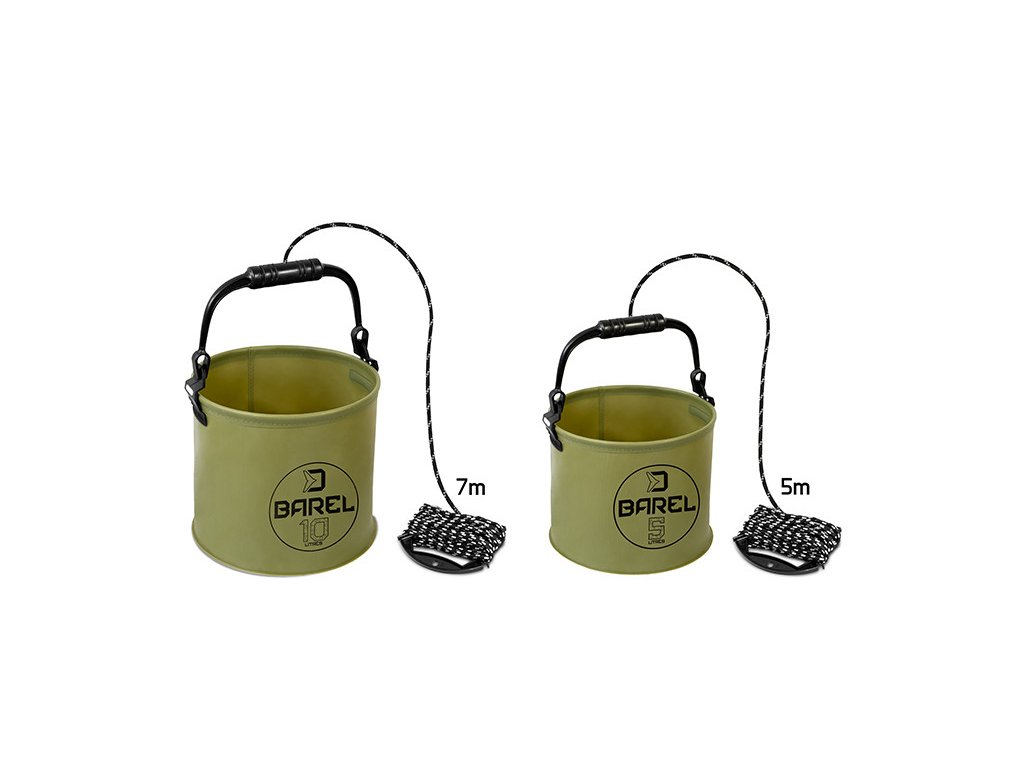 Delphin BAREL je užitečná pomůcka vyrobená z voděodolného EVA materiálu, který je pružný a ohebný a tudíž si váš kbelík můžete poskládat na naprosto minimální rozměry. Slouží hlavně k zalévání ryb na podložce těsně po jejich zdolání a během focení, avšak může být využit také jako malá zásobárna vody pro různé účely jako míchání krmiva nebo mytí rukou a také jako kterékoliv jiné vědro pro uskladnění náčiní, nástrah a podobně. Vědro BAREL je doplněno o pevnou rukojeť černé barvy s provazem, pomocí kterého je možné nabrat si vodu i z větší vzdálenosti od břehu nebo z méně přístupného břehu či člunu.
