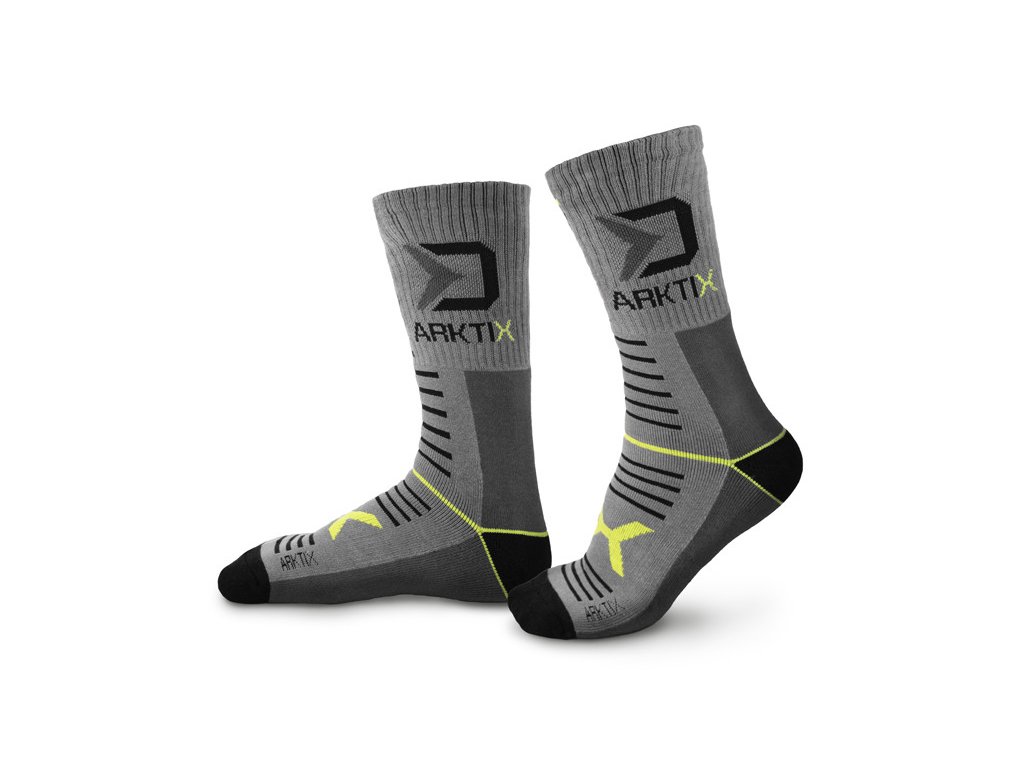 S extra tlustými termo ponožkami Delphin ArktiX si užijete maximální komfort a teplo během zimních výprav za rybami, zimní turistiky, procházky či lyžování. Silná termoizolační vrstva udrží vaše nohy v suchu a teple i během celodenního nošení. Pečlivě vybrané materiály zajišťují pohodlí, měkkost a odolnost, neocenitelnou zejména v nepříznivých podmínkách. Díky anatomickému střihu se ponožky přizpůsobí tvaru vaší nohy a zamezí vytváření nepříjemného tření a záhybů. Ponožky jsou vhodné pro muže i ženy a jejich stylový design lze zkombinovat s různým zimním ouftifem.