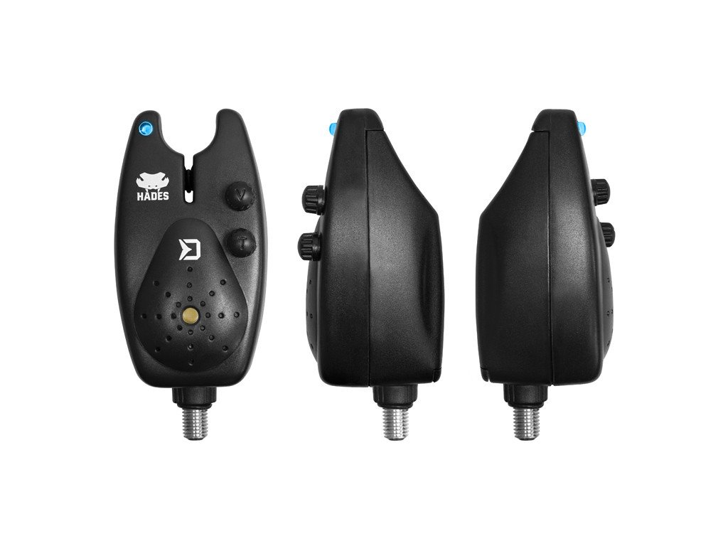 Delphin HADES je cenově velmi dostupný elektronický signalizátor záběru. Nabízí základní funkce světelné a zvukové signalizace. Je vybaven jednou záběrovou LED diodou a detekuje záběr v obou směrech. Jeho ovládání je opravdu velmi jednoduché a zvládne ho každý. Na spodní straně se nachází vstup pro 2,5mm jack konektor, a proto je možné i připojení závěsného signalizátoru záběru se zabudovanou světelnou signalizací. V přední části se nacházejí dva otočné ovladače. Vrchní ovladač slouží kromě ovládání hlasitosti i jako vypínač s aretací. Spodním ovladačem si můžete nastavit požadovanou výšku tónu. Signalizátor je vodotěsný, takže se o něj nemusíte obávat ani během deštivých dnů. Napájení je prostřednictvím 1 x 9V baterie. Při odběru 12 kusů signalizátorů HADES vám budou doručeny v pěkném prezentačním obalu, který slouží pro přímý prodej ve vaší prodejně. Tento obal je vyhotoven v kombinaci zelené a černé barvy, a zaujme na první pohled.