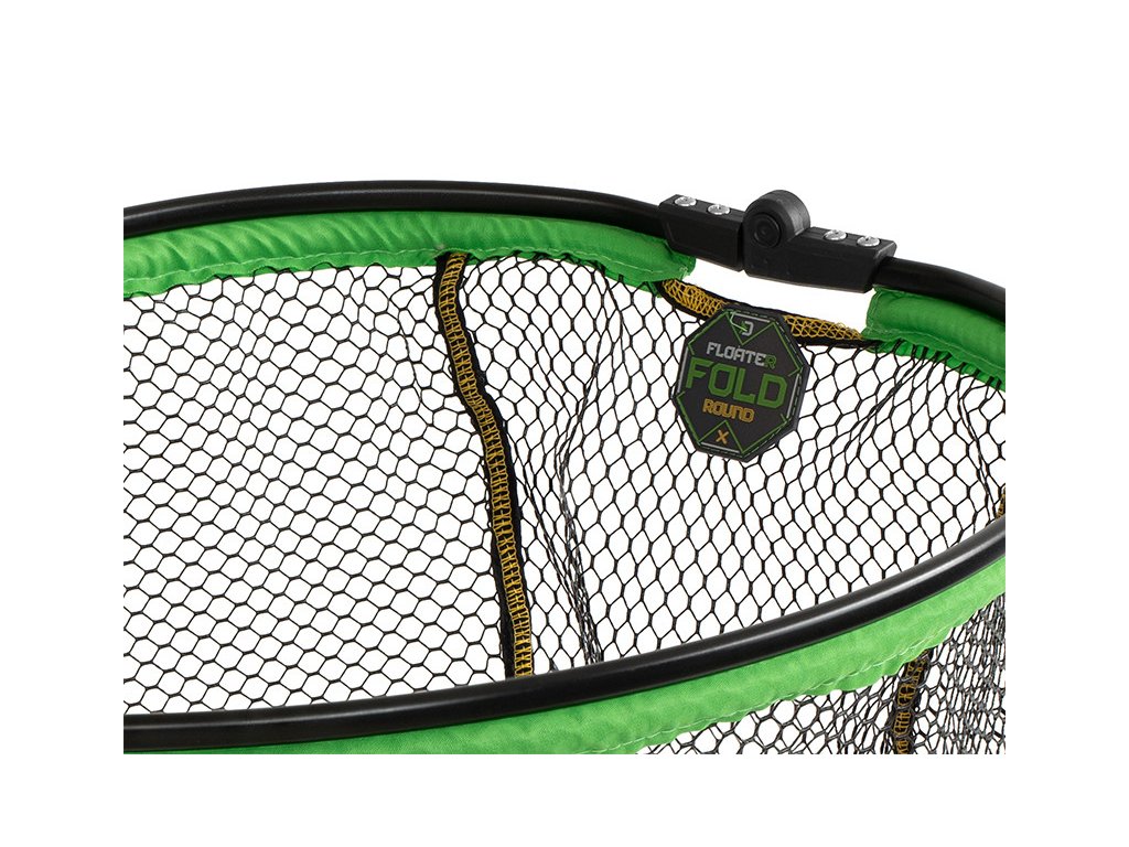 Plovoucí hlava podběráku oválného tvaru ze série REAXE disponující lehkým a pevným hliníkovým rámem černé barvy. Síťka FloateR FoldROUND je celá pogumovaná, tím pádem nenasává okolní vodu, snadno a rychle na vzduchu vysychá. Pod rámem je navíc prošita výraznou zelenou látkou po celém obvodu pro zvýšení pevnosti a odolnosti.
