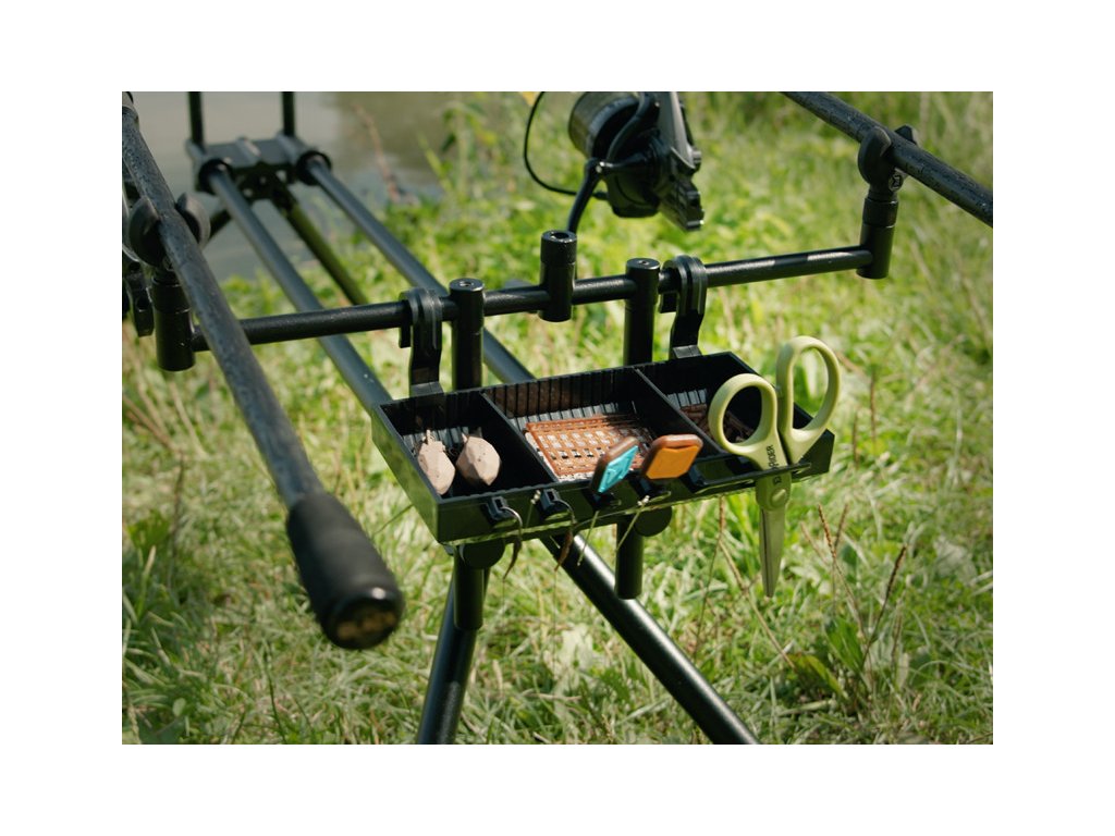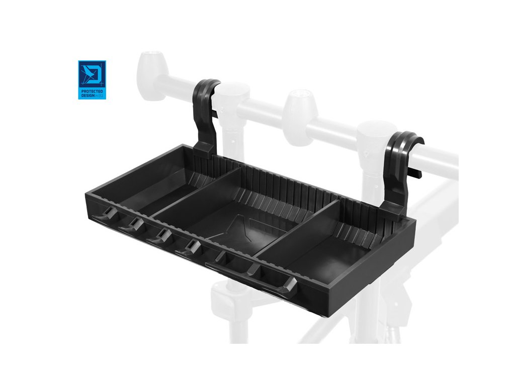 Polička slouží k uložení různého malého rybářského příslušenství nebo nástrah, což v praxi znamená, že všechny důležité drobnosti využívané pravidelně během lovu budete mít vždy po ruce, resp. připraveny přímo u vašich nahozených prutů.