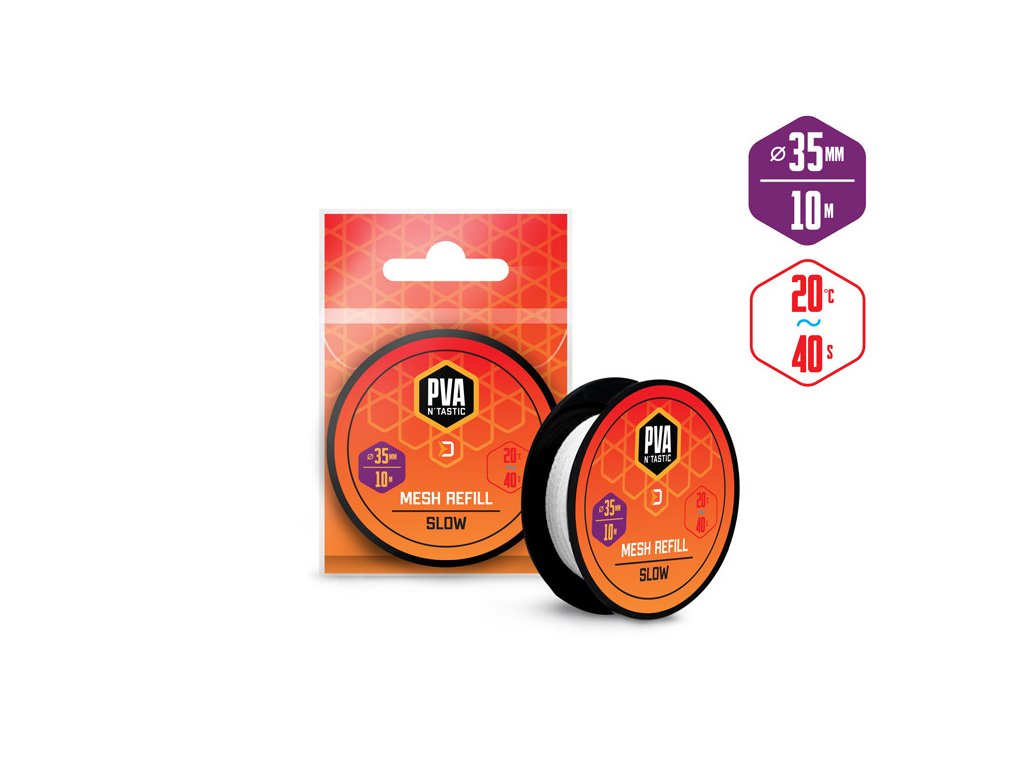 Náhradní PVA punčocha s prodlouženou dobou rozpadu je ideální pro lov během teplejších měsíců, nebo při lovu ve větších hloubkách, kde montáž klesá déle ke dnu. Jedná se o vysoce kvalitní produkt vyrobený v EU, při kterém díky důkladnému pletení nedochází ke svévolnému trhání punčochy a zároveň se výborně plní i velmi jemnými částicemi, čímž budete moci spolu s nástrahou poslat do vody i maximálně atraktivní návnadu přímo na montáži.