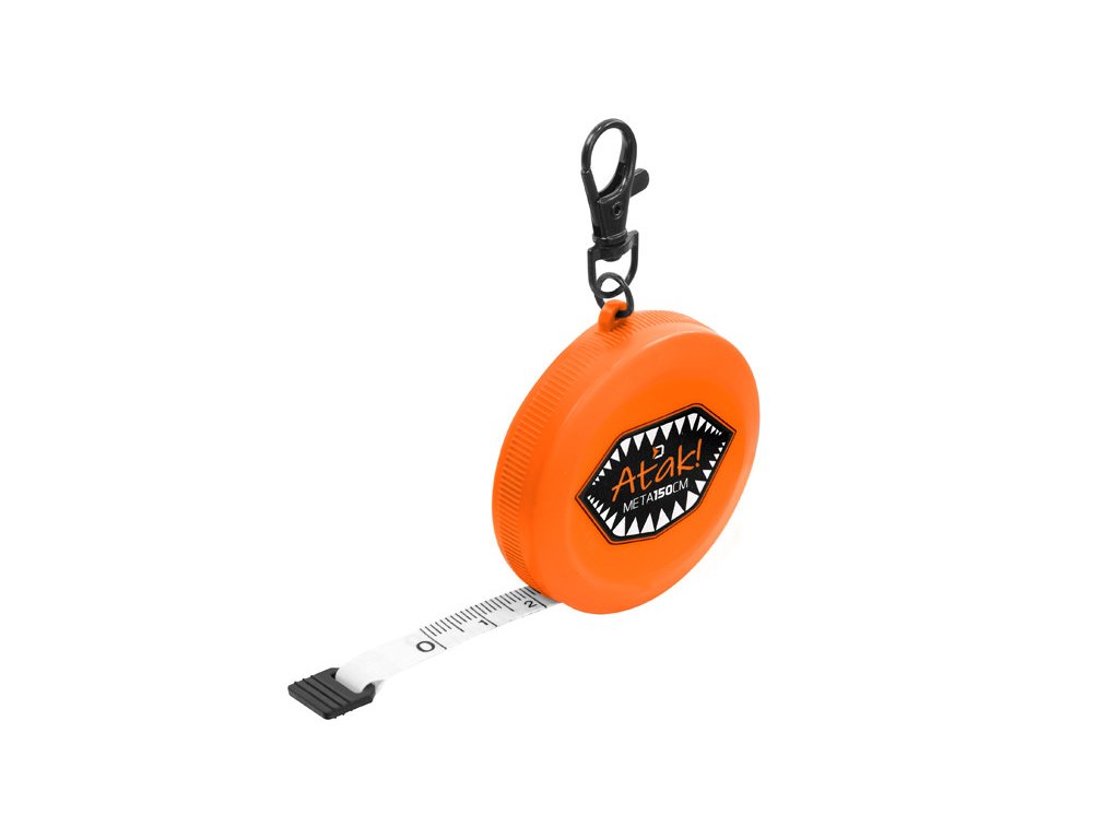 Stylový metr, který by neměl chybět ve výbavě žádného příznivce značky Delphin. MeTa Atak! je jedinečný metr, určený zejména pro milovníky přívlače, který v sobě skrývá několik vychytávek. Na první pohled zaujme efektním oranžovým designem s černými doplňky a grafikou v Atak! stylu. Na vrchu disponuje praktickou karabinkou, která umožňuje jeho upnutí na oblečení, případně na jiné místo, kde ho budete mít vždy po ruce. Konec samotného metru je opatřen praktickým držákem, kterým pásmo jednoduše vysunete. Pokud chcete, aby se pásmo "schovalo" zpět, stačí stisknout černé tlačítko na boku, čímž lehce dojde k jeho srolování. Celková délka metru až 150 cm umožňuje změřit i ty největší úlovky. Narozdíl od běžně prodávaných metrů je na metru MeTa i z druhé strany pásma uvedená stupnice v centimetrech, čili nikdy nedojde k záměně s jinými jednotkami.