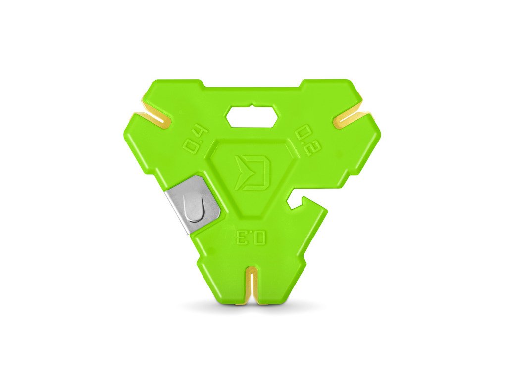 Pro komfortní uchopení a lepší manipulaci je Multiskin navržen do tvaru trojúhelníku. Disponuje třemi páry břitů na stahování potahů ze ztužených šňůr. Díky tomu bude pro vás hračkou stáhnout potah z tenčích, ale i tlustších návazcových šňůr, aniž by došlo k poškození jejich jádra.