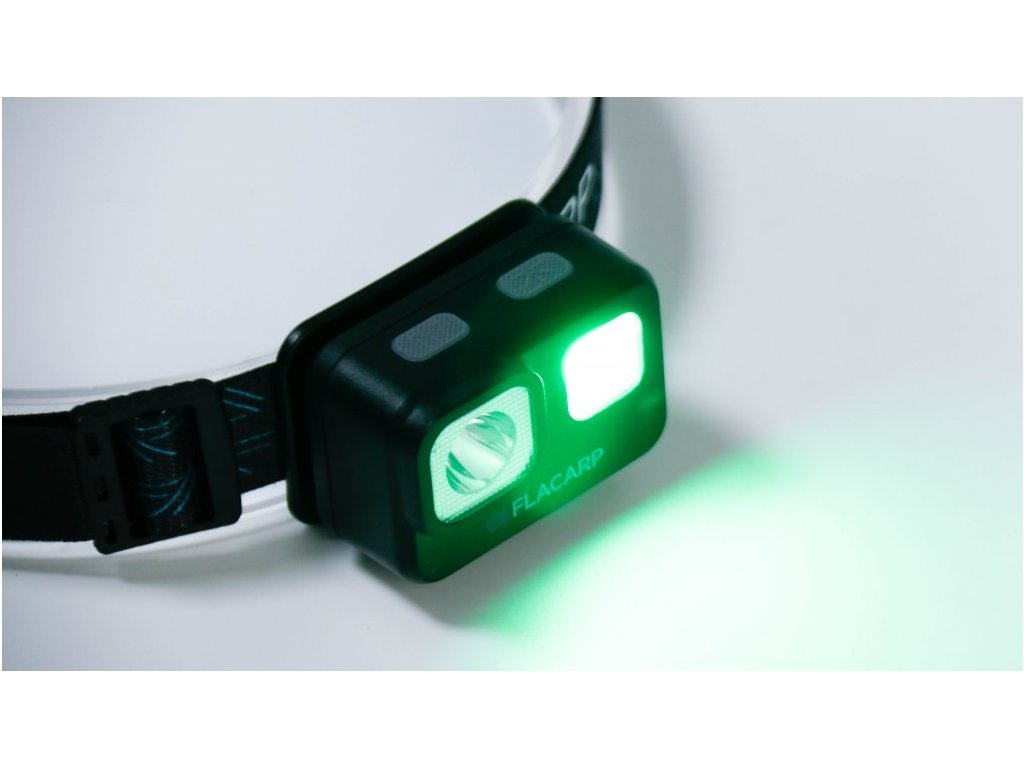 FLACARP Výkonná nabíjecí čelovka HL2000, bílá+zelená LED, Li-Pol 2000mAh, USB-C