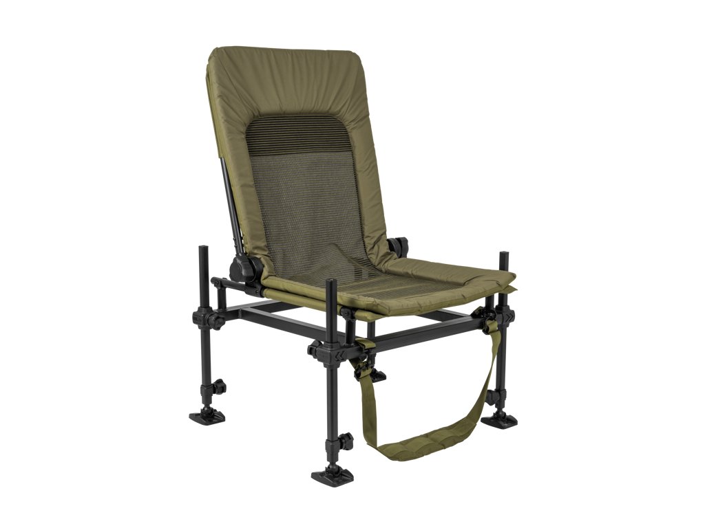 Křeslo Progress Feeder Chair nabízí mimořádně stabilní rámovou konstrukci s naší charakteristickou technologií nohou S23. Model Progress je stále vybaven naší patentovanou konstrukcí vertikálních nohou s pevným rámem pro extra stabilitu a snadné nastavení nohou. V kombinaci s příslušenstvím Korum Any Chair získáte dokonalé feederové křeslo. Matrace je podepřena naším materiálem Supa Lite STRETCH, který zajišťuje lepší prodyšnost a pohodlí. Samotné sedadlo má odnímatelnou polstrovanou část pro snadnou údržbu. Nohy jsou při přepravě drženy elastickými poutky. Doplněno nastavitelným polstrovaným popruhem pro snadný transport. Standardně vybavené odpruženými teleskopický nohami S23.