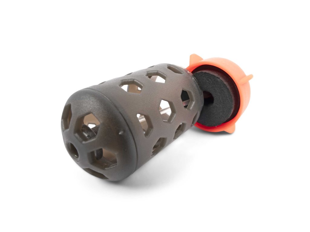 Vzrušující způsob prezentace nástrahy a krmení zároveň. Jedná se o plovoucí uzavřené krmítko, které vám umožní prezentovat volnou návnadu, která padá bezprostředně nad váš háček. Velké otvory pro použití s živými nástrahami, krmením , peletami, a chlebem. Integrovaná 3g zátěž ho stabilizuje při nahazování a dokonale prezentuje nástrahu.