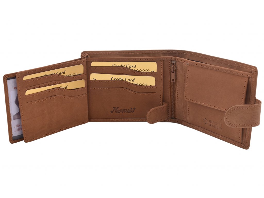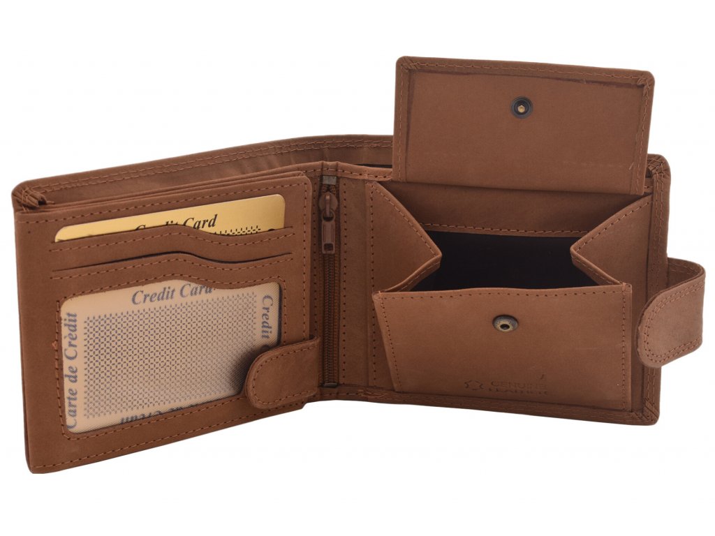 Oblíbená pánská peněženka se zapínáním na šířku je jeden z klasických modelů s praktickým vnitřním členěním. Zejména díky tomuto vnitřnímu členění je peněženka top modelem mezi peněženkami se zapínáním. Vnitřek nabízí až 9 přihrádek na karty, jakož i průhledné přihrádky vhodné pro uložení fotek nebo dokladů s fotkami. Nedílnou součástí je i kapsa na mince, která se nachází uvnitř, hned vedle zipové přihrádky.