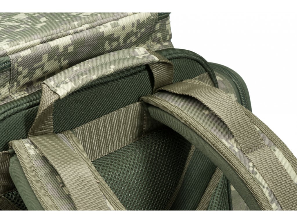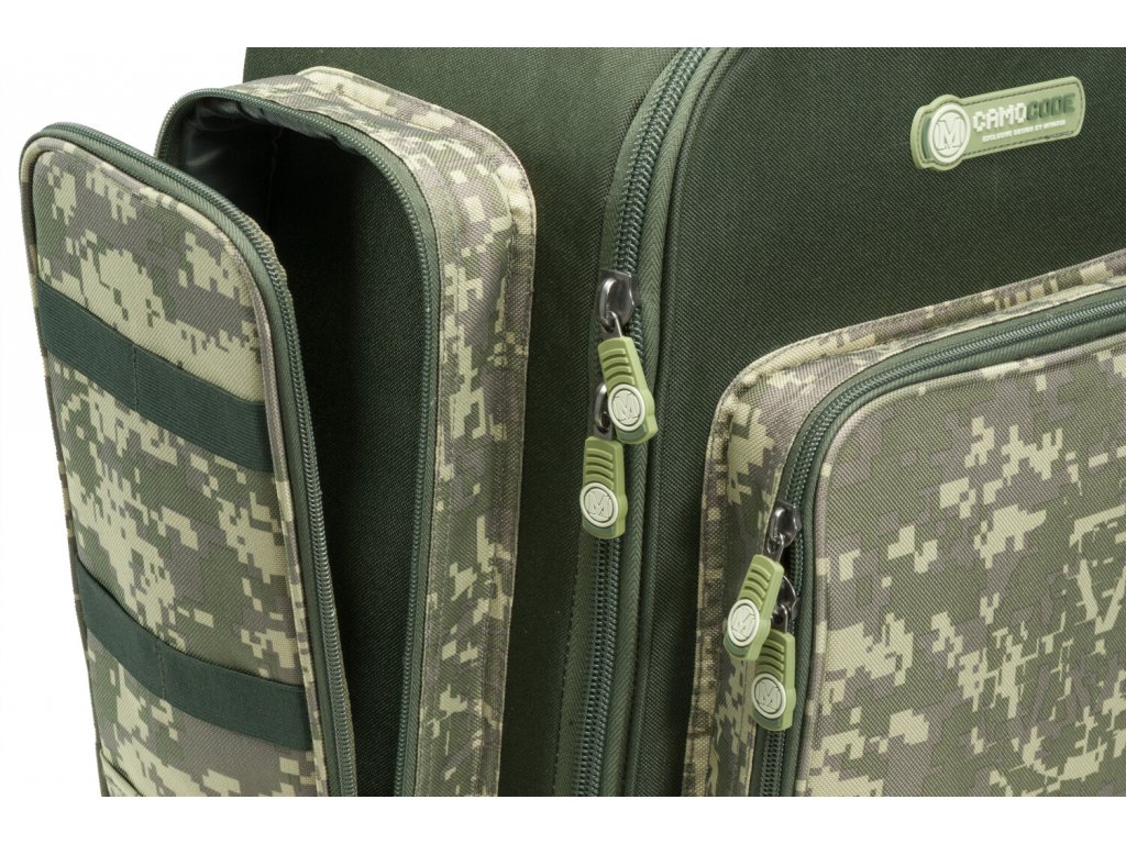Víceúčelový batoh střední velikosti pro přepravu rybářského příslušenství s možností rychlého a snadného přístupu k přepravovanému obsahu. To je zajištěno otevírací přední stěnou a velkými kapsami po obvodu. Svojí velikostí je před¬určen pro kratší vycházky nebo aktivní rybolov, při kterém se postupně přemisťujete na nová lovná místa. Polstrované popruhy a odvětraná zádová část umožňují velmi pohodlné nošení. Odolný, nepromokavý a snadno omyvatelný materiál B POL600D v CamoCODE designu včetně originálních táhel zipů podtrhují prémiovou kvalitu tohoto batohu.