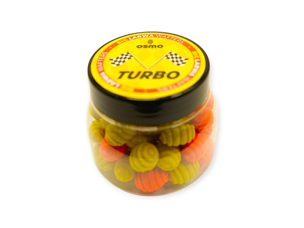Larwa Wafters jsou inovativní nástrahy vyznačující se jedinečným tvarem a velkou velikostí. Jedná se o neutrálně vyváženou nástrahu skvělou pro lov na method feeder.Příchuť Turbo má výraznou žvýkačkovou vůni a v balení je žlutá a oranžová barva.