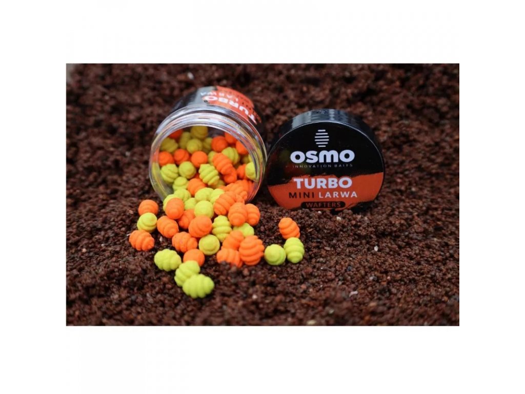 OSMO Mini Larwa Wafters jsou inovativní nástrahy vyznačující se jedinečným tvarem a malou 7 mm velikostí. Jedná se o neutrálně vyváženou nástrahu skvělou pro lov na method feeder.Příchuť Turbo má výraznou žvýkačkovou vůni a v balení je žlutá a oranžová barva.