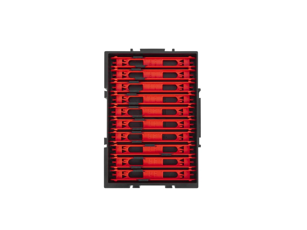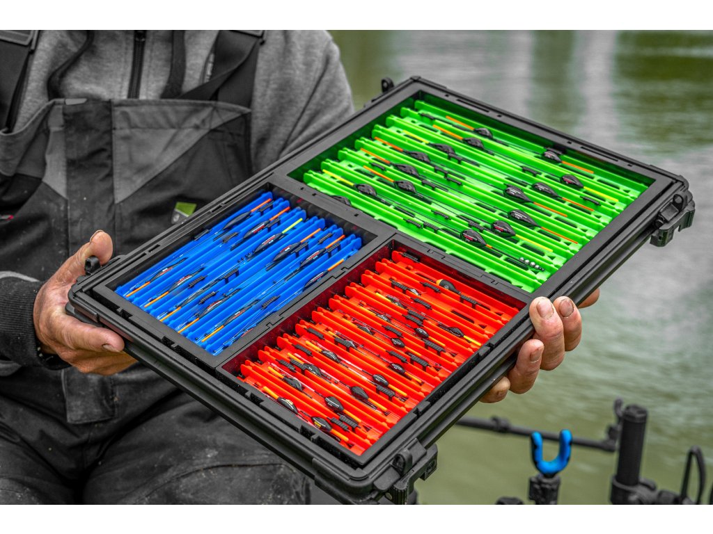 Interlok Winder Trays jsou plně přizpůsobitelné, aby vám umožnily vytvořit perfektní přihrádky na kostřičky pro bedny Absolute nebo Inception. Přihrádky různých velikostí se spojí a poté se úhledně vejdou do 26mm Absolute nebo Inception mělkého modulu. Oblíbená konfigurace je jedna z každé velikosti přihrádky, což vám dává kapacitu pro uložení kostřiček všech tvarů a velikostí do stejné přihrádky. Pro rybáře, kteří používají více přihrádek nebo používají podobný tvar splávků na všech návazcích, lze stejné přihrádky vzájemně propojit a vytvořit tak velkou kapacitu jedné velikosti kostříček. Přihrádka 26 cm zabírá 50% kapacity modulu sedačky, zatímco přihrádka 13 cm a 18 cm zabírá každá 25%. Jakákoliv kombinace přidaná do 100% zaplní mělký modul bedny Absolute nebo Inception.