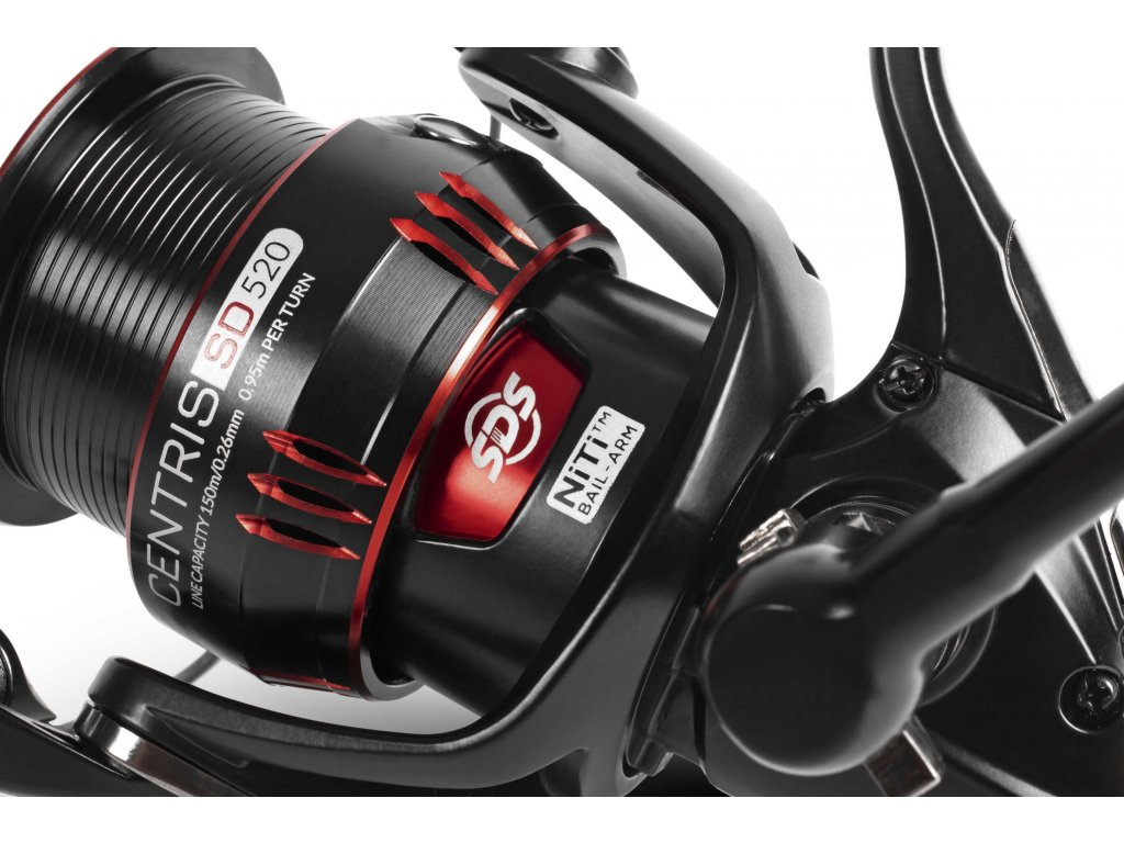Centris SD má kompaktní tělo s převodem Power Drive. Tato super pomalá oscilační šneková hřídel nabízí vynikající navíjecí výkon vzhledem k velikosti navijáku. Technologie stojící za překlapěčem navijáku z NiTi drátku zajišťuje, že se vždy vrátí do správného tvaru, což eliminuje ohnutí překlapěče navijáku při skladování a přepravě. Díky vícenásobným podložkám je mikroregulovatelná přední brzda neuvěřitelně hladká. Tlačítkové uvolnění cívky umožňuje její okamžitou výměnu.
