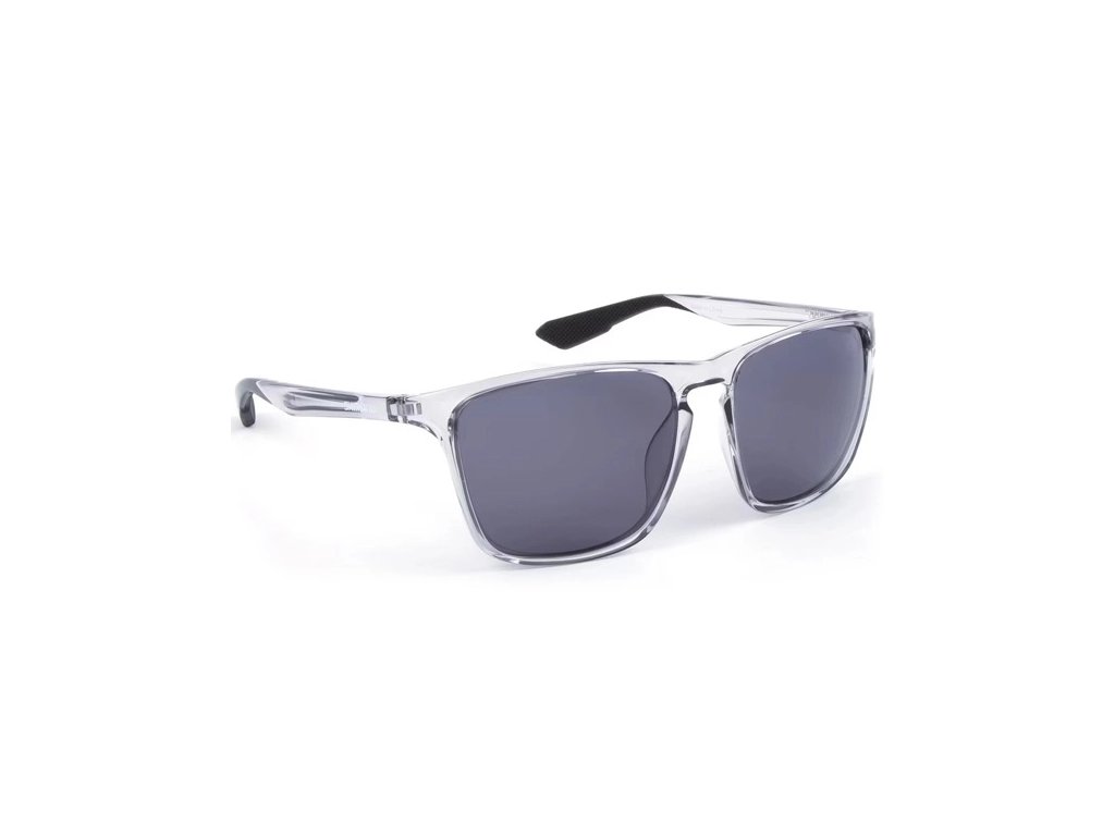 Moderní polarizační brýle s transparentním šedým rámem a tmavě šedými čočkami poskytují maximální ochranu očí při jasném slunečním svitu.