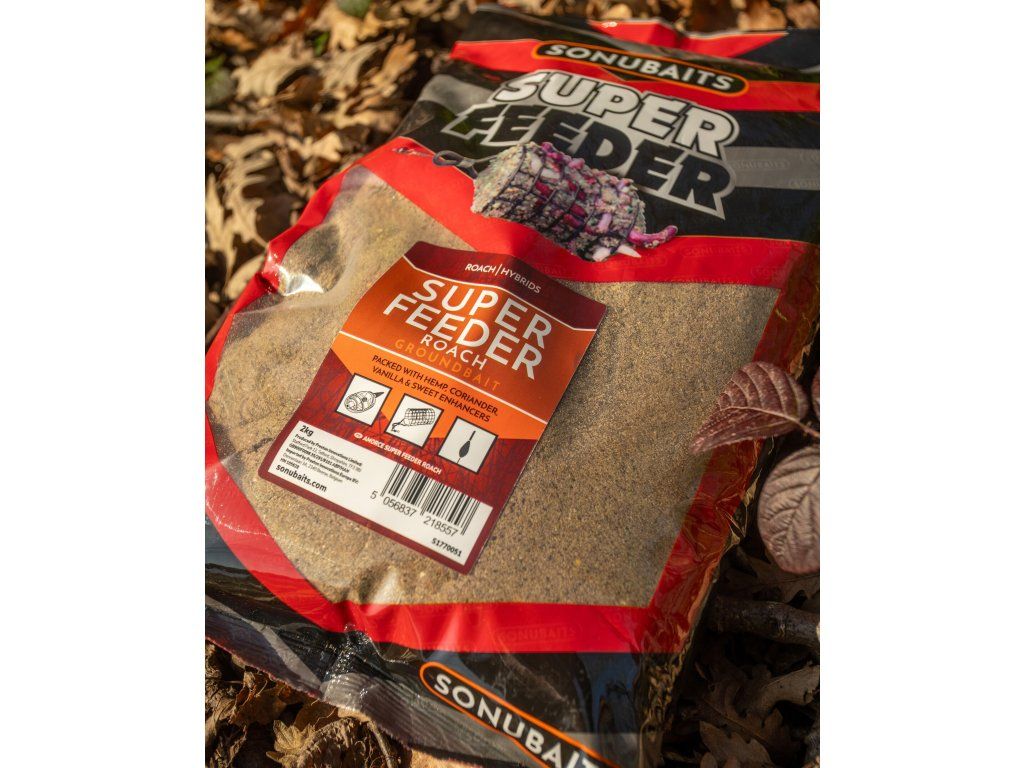Super Feeder Roach je krmení bez rybí moučky, které bylo vyvinuté speciálně pro lov s krmítkem ve spolupráci se světovým šampioném Felixem Scheuermannem a konzultanty Sonubaits Lee Kerrym a Willem Freemanem. Ačkoli je označené jako krmení na feeder v rámci naší řady „Super Feeder“ o hmotnosti 2 kg, je také ideální pro použití při lovu na plavanou na přírodních lokalitách. Jde o jemnou směs na bázi obilovin s přísadou drcených konopných semínek a koriandru a sladkou vanilkovou vůní. Důležité je, že krmení Super Feeder Roach není příliš lepivé, což zajišťuje, že se s ním dá účinně lovit pomocí klecových klasický nebo plastových krmítek a je také ideální, když je převlhčené a použité do krmítka typu „window“.