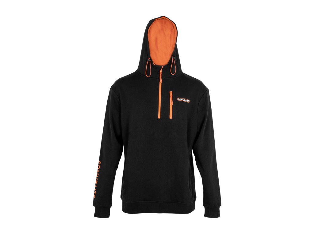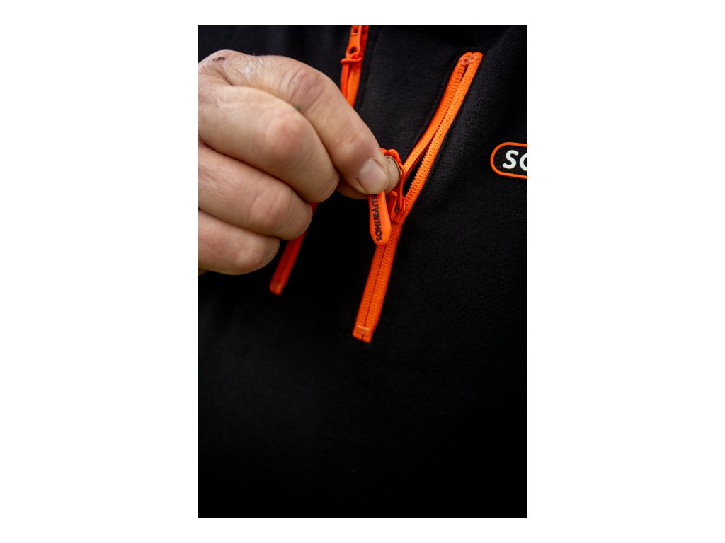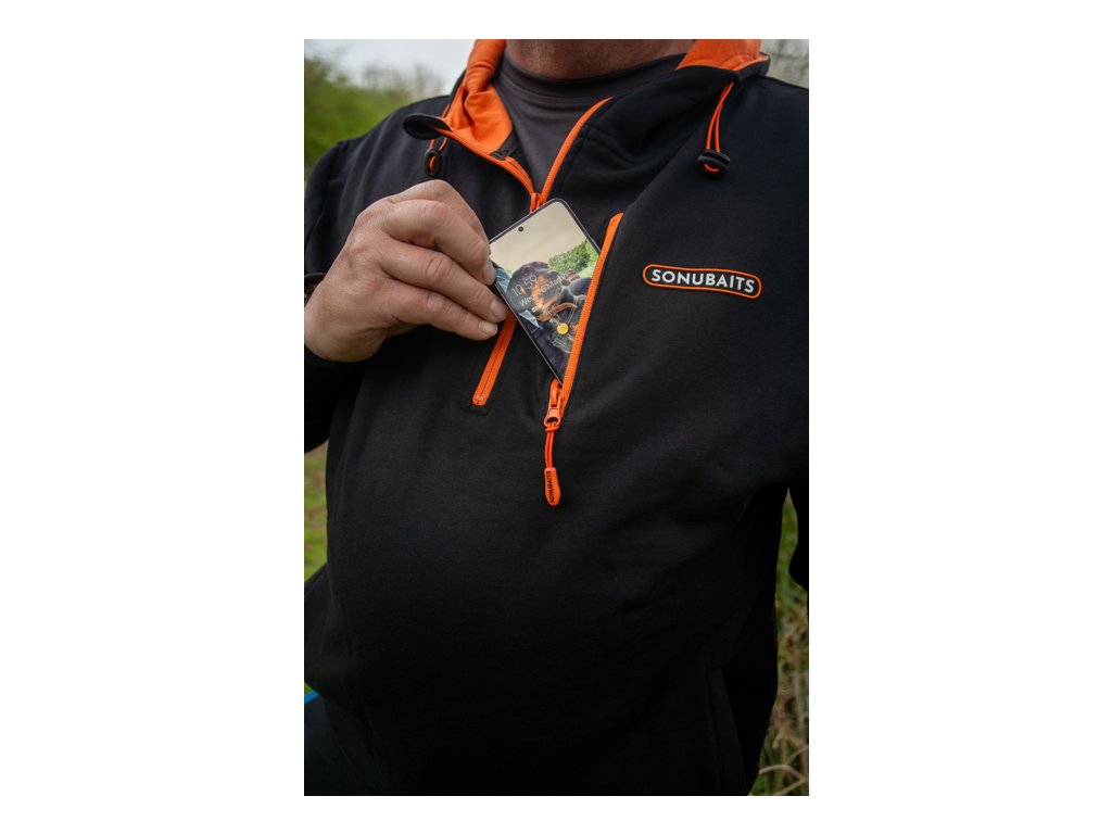 Mikina Sonubaits 1/4 Length Zip Hoodie je dokonalou kombinací stylu a pohodlí pro každého rybáře. Tato černá mikina je vyrobena z měkké a odolné tkaniny a má výrazné oranžové detaily - včetně poutavé vnitřní kapuce a vnitřních kapes, které jí dodávají barevný nádech. Velké logo na zádech hrdě prezentuje značku Sonubaits a dává jasně najevo, že to s rybařením myslíte vážně. Ať už jste na břehu, nebo odpočíváte doma, tato mikina vás udrží v teple, pohodlí a připravené na cokoli. Nezbytný doplněk pro všechny fanoušky značky Sonubaits, kteří chtějí obohatit svou sbírku rybářského vybavení o nějaký slušivý kousek!