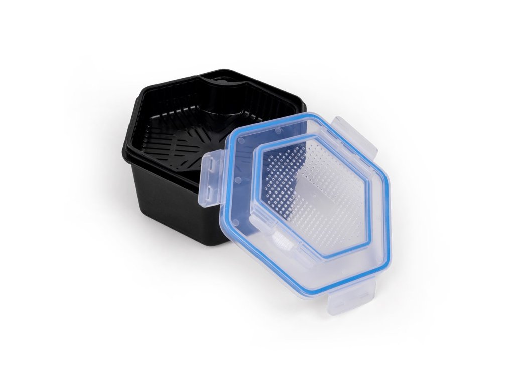 Pevná konstrukce víka s klipem bezpečně zaklapne na všech čtyřech stranách. Každé víko má zabudovaný únikový poklop a zúžené vzduchové otvory, které zabraňují úniku nástrahy. Každá krabička na nástrahy má ve tmě svítící gumové těsnění. Víčka jsou univerzální pro všechny velikosti krabiček. Odolný vstřikovaný polypropylen.