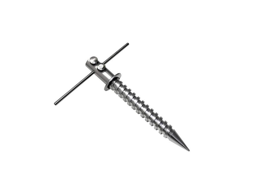 Vysoce kvalitní duralový držák deštníku se zavrtávacím hrotem do tvrdé a kamenité země. Pomocí kulatiny můžeme držák deštníku řádně utáhnout, aby udržel váš deštník pevně ukotvený v zemi.